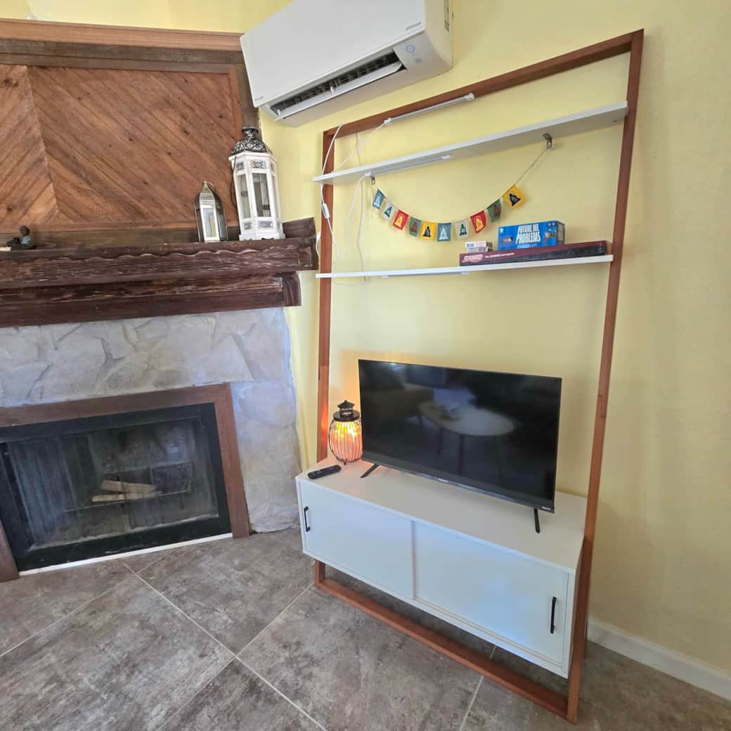 Relax by the indoor fireplace after a day at the lake, or gather around the outdoor fire pit surrounded by nature and the sound of crickets. It’s the ideal mix of rustic comfort and retro style.