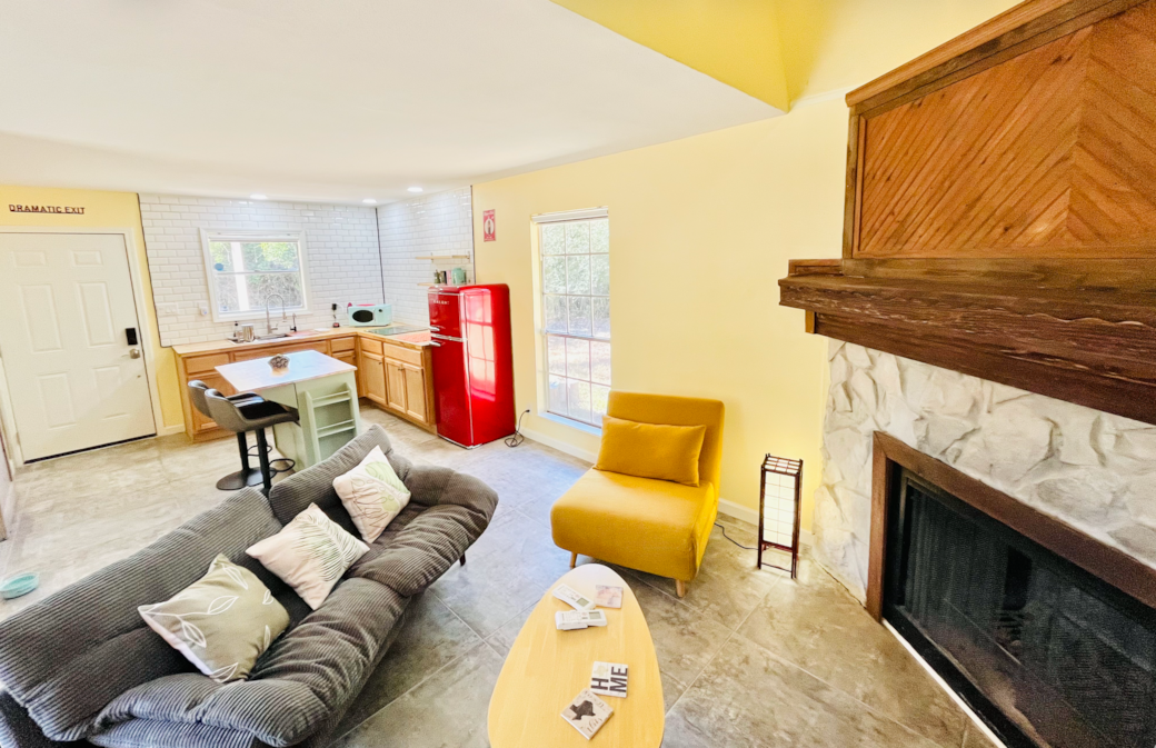 Step back in time and unwind at this adorable red cabin tucked away in quiet Somerville, TX. Designed with a nostalgic 1950s flair, this retreat features vintage-style appliances, warm wooden finishes, and a welcoming vibe that instantly makes you feel at home.